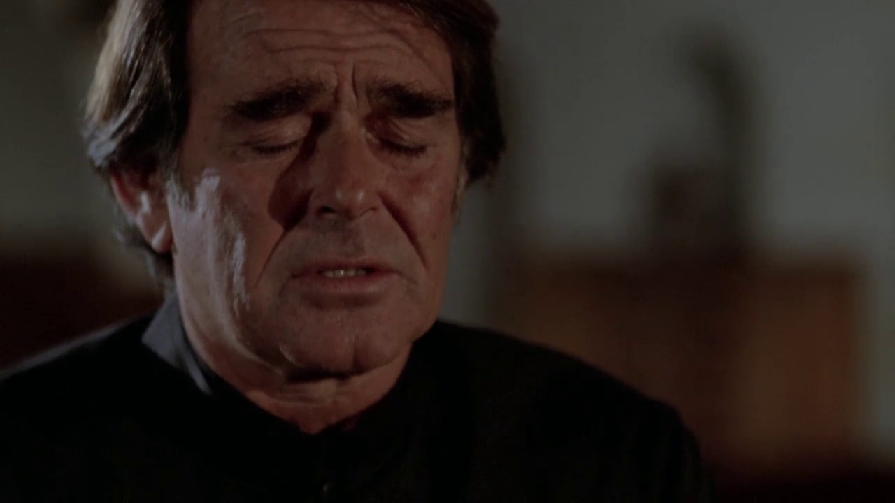 Jenson’s on the run and soon after blowing the mine entrance can be found using that hand to good fortune in Vegas. Criminals take notice and the film picks up the gore quotient when his left hand decides to defend it’s host. Like Campbell, Jenson seeks to sever his hand but has a serious setback resulting in his own death. Once Eggar tracks her hubby down, she’ll turn to local Priest Stuart Whitman sporting an Irish brogue when he feels like it to help her destroy the evil that took Jenson’s life. It isn’t Jenson’s dead body they need to worry about because our evil is going to find a new host.