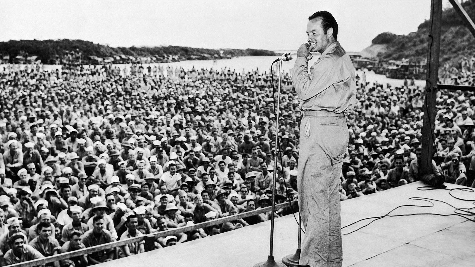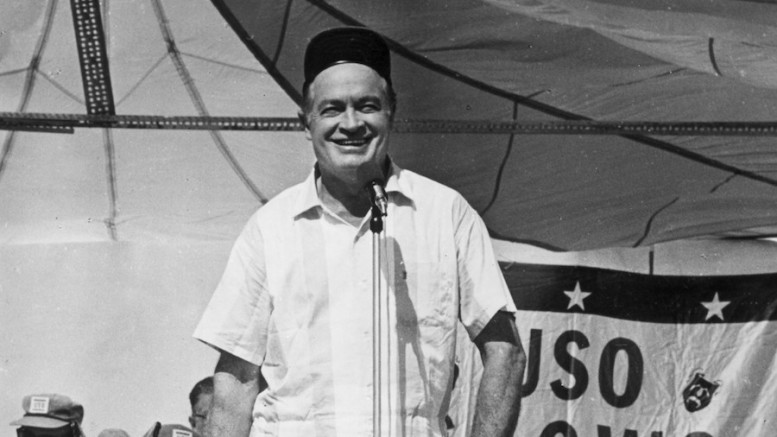While I chuckled more often than not, one image really got me laughing as Bob relates the story of his plane landing at a base when the CO tells him that plenty of army wives and kids are in a rec center watching a movie. Bob goes over and does a quick show of adlibs bringing cheer to the ladies. “Any questions?” he asks. At this point a little tyke in the front row stands up and asks/complains, ‘When are they gonna put the movie back on?” Or the Russian lady who wanted to know if America’s funny man had brought his violin?