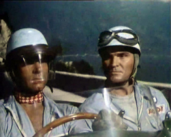 Romance rears it’s ugly head for Steel when he is reunited with Odile Versois. An actress I’ll confess to never having heard of and not to be cruel but it’s no wonder. She isn’t exactly an eye catcher and I didn’t see any magic happening either when the camera put her front and center. Back to the plot. Justice needs to get Baker out of the country so what better way than to put him in a race car in this transcontinental road race. With a payoff, Justice sees to it that his main driver, Patterson is slipped a “mickey finn” and makes a deal with the young and eager Steel to take over driving duties so long as he agrees to the stranger with a quick temper being his second in the passenger seat. And so Baker gets his chance to flee the country.