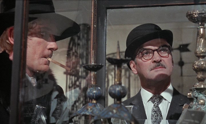 It’s a very dapper looking Stanley Baker this time out in bowler and the customary umbrella hooked over his arm as the tough guy plays it light. He’s cast as a banker with designs on the money kept inside the company vault and in order to get at it, he enlists a couple of fellow leading actors to make his dream of riches and retirement a reality.
