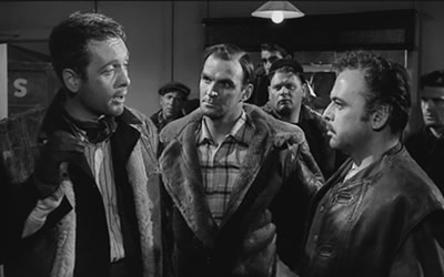 Baker does little to endear himself to the gang and when he refuses to join in a brawl at the dance, he becomes a social outcast to all concerned other than Herbert Lom who Baker numbers as his one and only friend. Lom shines here as the loyal pal, Gino the Italian member of the gang and it’s a role Lom could proudly add to his resume of characters. While he may be a tragic figure, it’s hard not to hope that he’ll capture the heart of the one girl he loves in a triangle that never interferes with the main thrust of the plot.