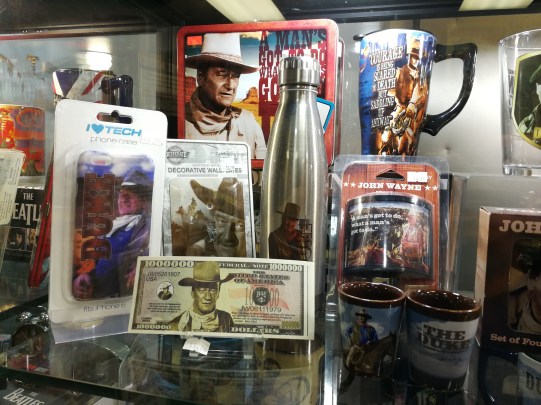 As a curio for us John Wayne fans, I spotted a cabinet full of Duke merchandise while vacationing in the cowboy country of Alberta. I did need a new eyeglass case for my office at work. It’ll fit right in with the rest of the movie items that catch my guests eyes when sitting down to do business with yours truly.