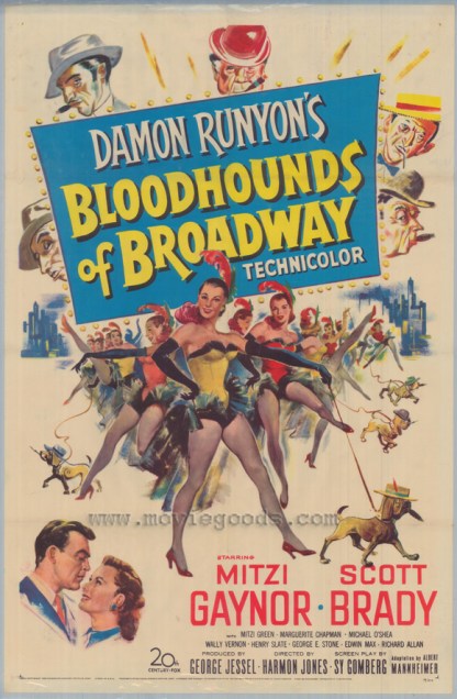 For your musical entertainment why not take a pair of Mitzi’s, Gaynor and Green along with a couple of lazy bloodhounds. Now mix them with a numbers racketeer looking for love played by Scott Brady and are you ready for this….. add in a couple of screen heavies, Timothy Carey and Charles Bronson and voila! You’ve got the latest Damon Runyon technicolor offering of 1952 from 20th Century Fox and director Harmon Jones. Before you ask, Carey and Bronson don’t sing any notes or get in on any dance numbers though looking back from our vantage point it’s something we’d love to have seen taken place.