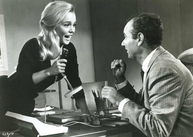 Having a hypnotic power over Miss Weld, Roddy befriends her while at the same time attempting to make her every wish come true. Tuesday’s character is Barbara Ann. Named after Barbara Stanwyck and Ann Sheridan by her mother and possible prostitute Lola Albright. Naturally Weld wants to become a Hollywood star but along the way to that goal are other wishes that the devious Roddy will put in to motion. Not only does he figure out how to land her twelve angora sweaters for a specific fraternity of spoiled blonde babes including colors Periwinkle Pussycat and Grape Yum Yum, but he tutors her on how to land a job as Korman’s student secretary. Korman is the school principle and more than a little infatuated with beautiful Tuesday, hanging on her every word as only a lascivious Harvey Korman can play. Watching him here only brings fond memories of his many skits and characters he enacted on the Carol Burnett show that my family would watch gathering around the TV while I was growing up. Some of which had Roddy guest starring.