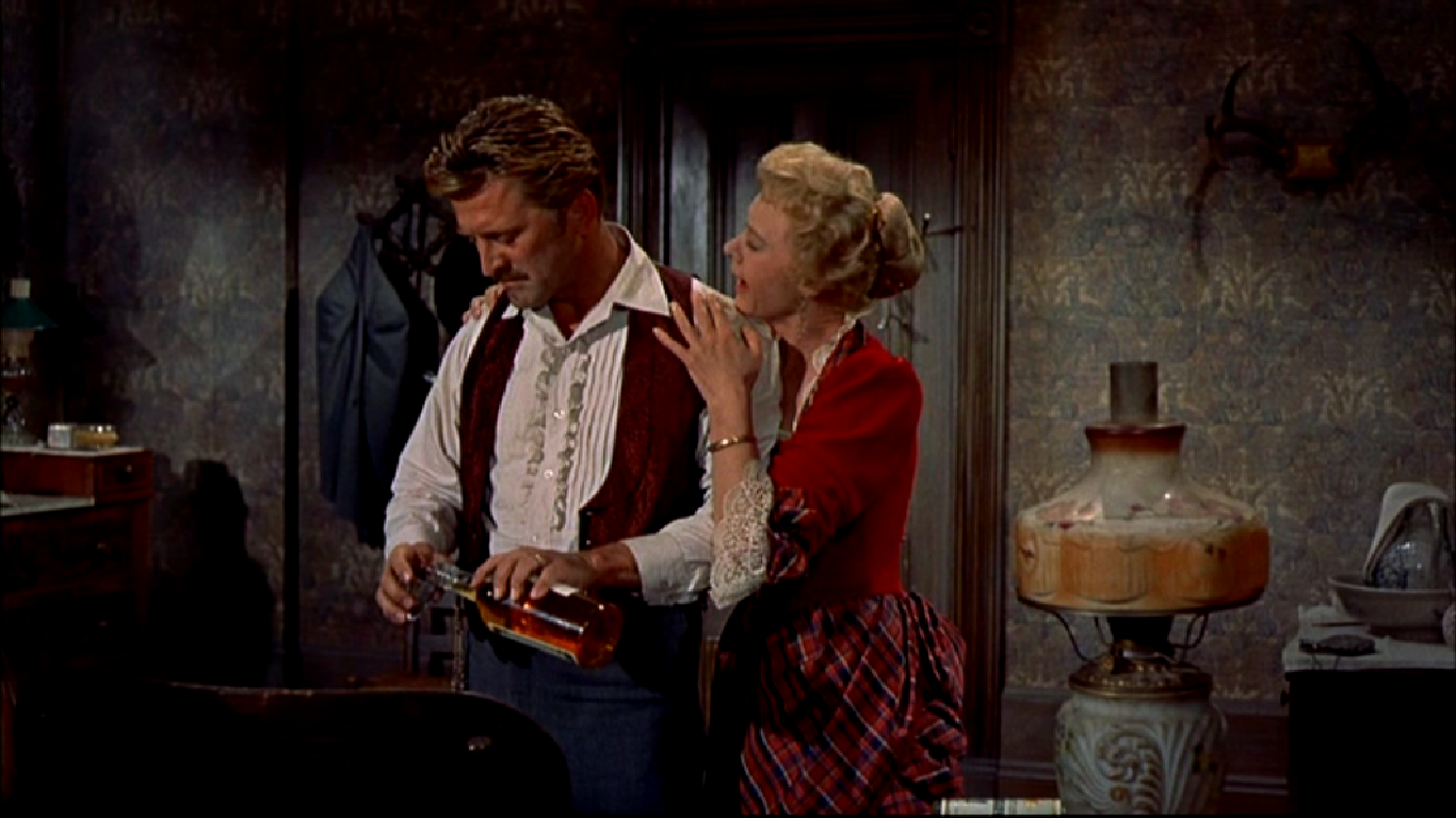 I’ve lost count of the number of times I’ve seen this film throughout the years from TV as a kid to weekend VHS rentals on to DVD and finally my recently acquired blu ray version of the film. I’ve always enjoyed the film and see it as one of Kirk’s best roles of the period. After all, the Doc Holiday role has always been the flashiest of the two iconic names in western history. Douglas has the storied affliction of TB associated with the character that sees him barely able to survive at key points in the film while exploding as only Kirk Douglas can on camera when called to cut loose.