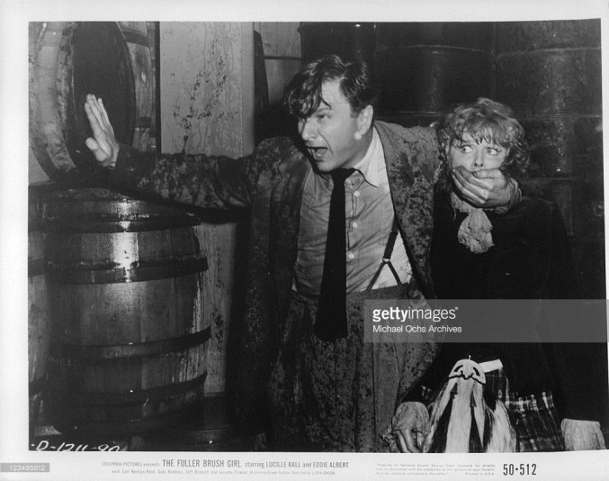 Let the slapstick begin when Lucy gets fired from the switchboard and moves into door to door sales as The Fuller Brush Girl. Her first call is classic when none other then 1948’s Fuller Brush Man, Red Skelton answers the door. Seconds later he shuffles her back on to the street having sold HER some goods. Next up she gets coerced into a magazine subscription. Things aren’t working out for dear Lucy as one house call follows another. More so when she leaves a quartet of old girls with make overs and very little hair through no fault of her own.