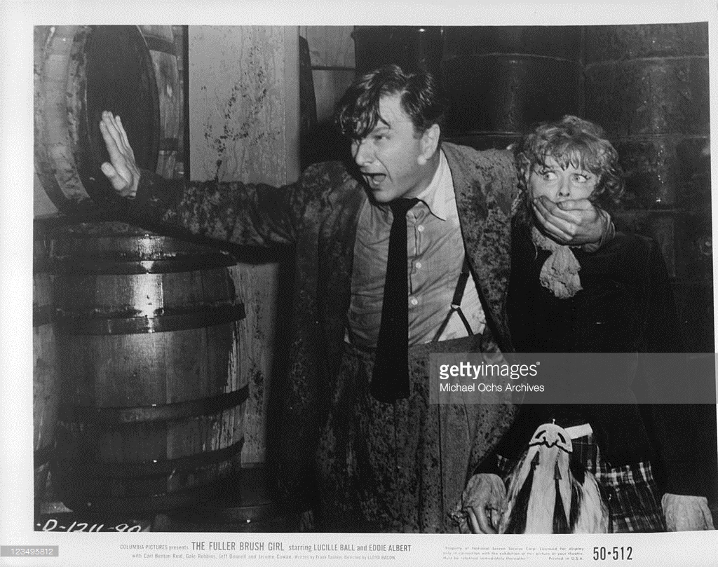 Part of any slapstick farce is the mistaken identity gag and Lucy is about to find herself as the chief suspect in a murder case that all begins in Eddie’s office and his shady boss played by Jerome Cowan. Comical hijinks follow as Eddie and Lucy find themselves on the run and of course the only way out is to prove her innocence is to unveil the real killer and criminal gang they are soon to cross paths with. Kind of tough when another body is laid at their feet. The trail of thieves lead them to a burlesque joint where Lucy finds herself on stage to Eddie’s embarrassment and to John Litel as the company lawyer who may not be the savior they think him to be.