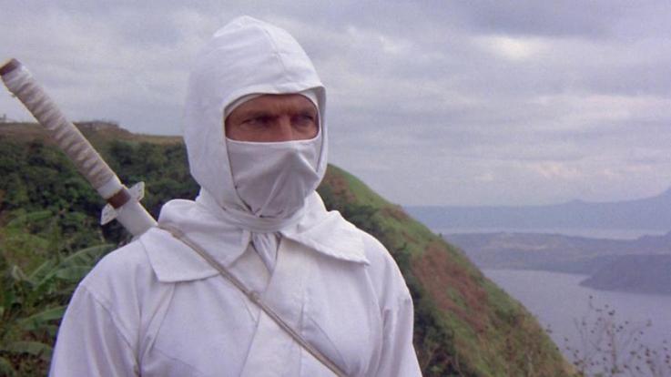 Before morphing into an updated martial arts version of Shane, this Menahem Golan directed feature starts off with Nero receiving his bona fide diploma from the ninja training school after taking out his entire group of classmates dressed in red and evading Sho Kosugi’s master ninja in black. Nero’s color of choice? All white. Just like the good guys in western features of the 1920’s. Being clad in an all white outfit except for a small slit to see out of makes it very handy for Nero’s stunt double to twirl some knives and engage in some hand to hand combat.
