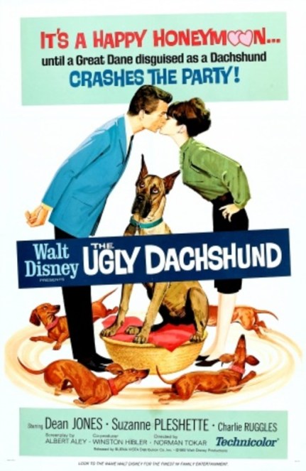 Unbeknownst to Pleshette, Ruggles convinces Dean to take another pup home that needs wet nursing. It’s a tiny, hold him in the palm of your hand Great Dane. And so the adventure begins, Disney style. Suzanne knows somethings up and points out how the one male in the litter is an ugly pup. Within a few minutes of screen time, a gangly, gorgeous Dane is fumbling his way about the house that Dean has named Brutus. Time for Uncle Walt to cue the must have animal scenes where Pleshette’s angelic quartet of female Doxies cause all the destruction within their home and Dean’s art studio leaving poor Brutus holding the bag and the paint tubes.