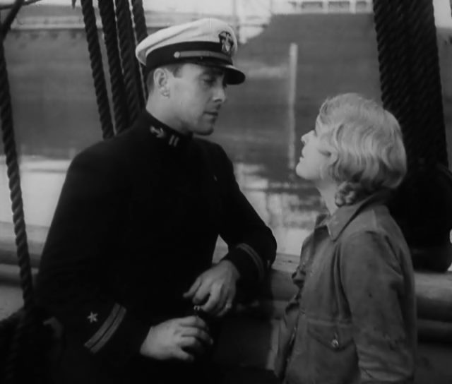 It’s interesting to note that when Victor is talking to his own officers including John Loder, they speak German and the film offers title cards as if it were a silent film in lieu of subtitles. It’s in port that O’Brien will take up with Marion Lessing who is actually a German spy and the sister of Commander Victor. I know it’s an early thirties flick and injecting crazy plot inventions like these were common but it’s just too ridiculous from our vantage point and I wonder if it was thought of the same at the time. There’s a definite conflict of interest here for O’Brien when he finds out his beloved’s innermost feelings and her true love for the Fatherland.