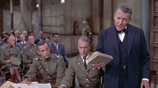 Much of that has to do with the performances involved and while I love all things Coop, it’s Ralph Bellamy as his defence attorney who steals the show. While Bickford and the court of Generals are deep sixing Bellamy’s case at every turn, he continually tries to get one witness on the stand to agree with Coop’s words making it more of a case of Coop telling the truth as opposed to breaking rank and speaking out against his commanding officers. Bellamy has a field day in this role and it’s by bringing in Lord’s widow played by a young Elizabeth Montgomery that allows the flood gates to open both in the court room and nationally as the case is being covered by newspaper reporters coast to coast.