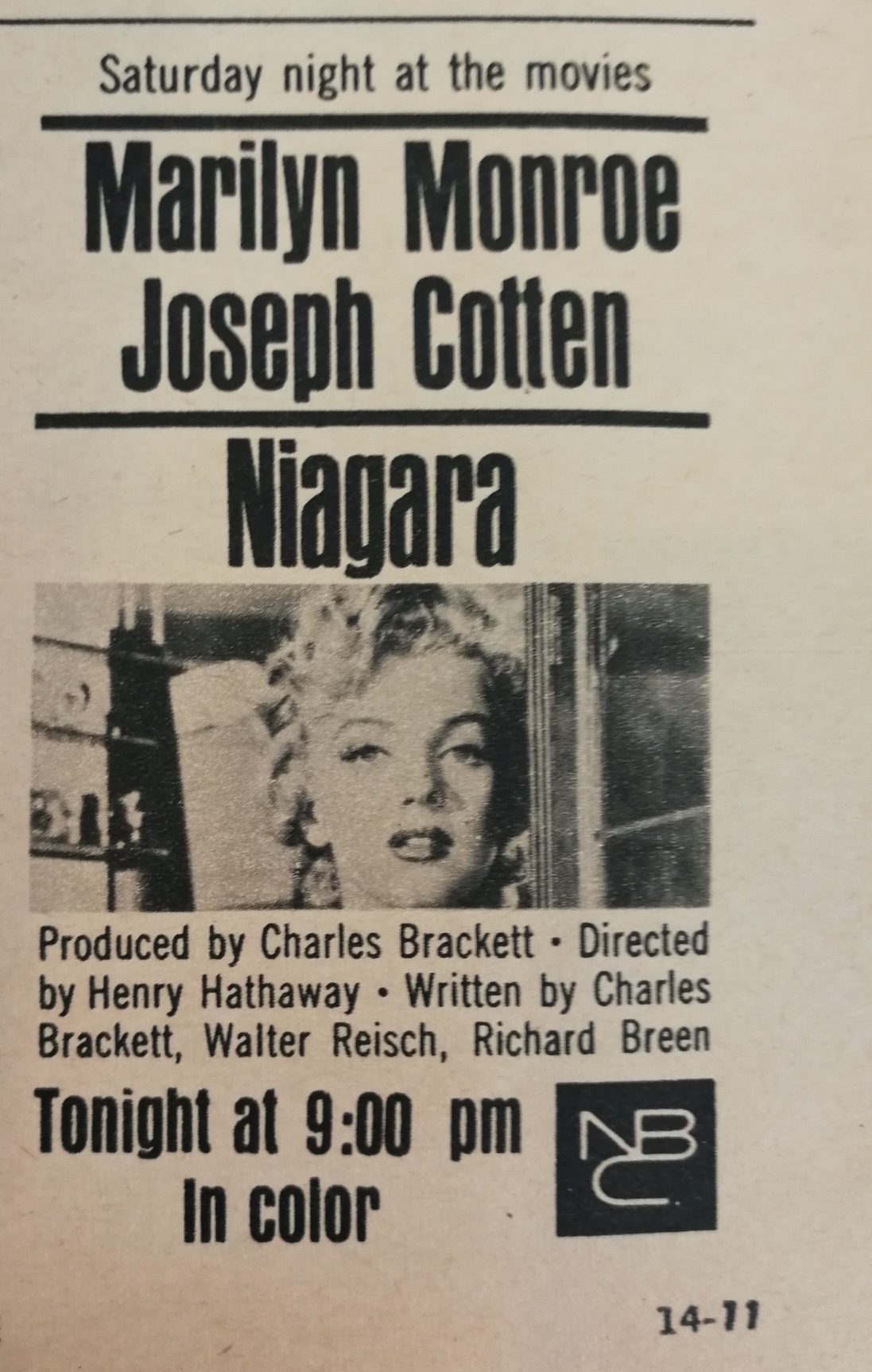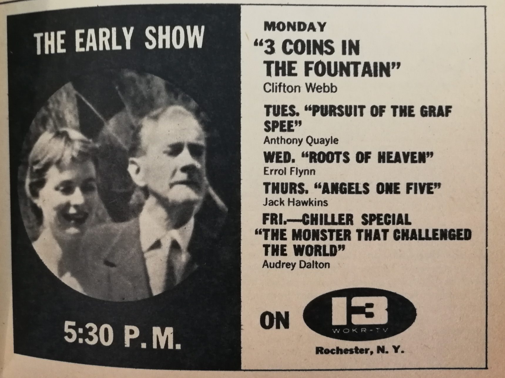 Out of everything, I’d take ‘The Bravados’…a cool little revenge Western that I think is worth a look. And which Early Show offering would I take at 5:30? Definitely ‘The Monster That Challenged the World’. Love seeing the old NBC logo, and don’t forget: “Movies are great on colorful Channel 8!”