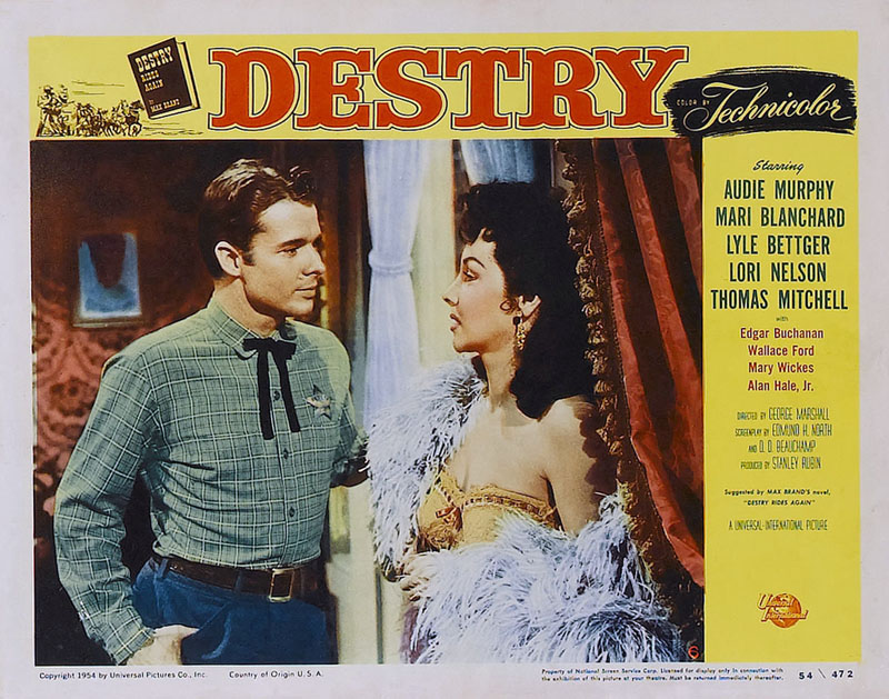 Whenever you get to it, please let me know! I’ve been looking everywhere for a TV airing of Audie Murphy’s Destry (along with his another 1954 film of his, Drums Across the River), but I seem to have no luck in that department……
