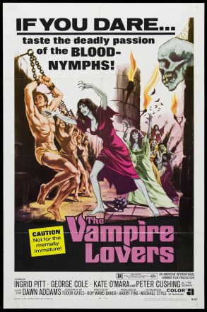 Love that warning for ‘The Vampire Lovers’: “CAUTION: Not for the mentally immature!” And my favorite poster of the bunch would be ‘Planet of the Vampires’…some very cool artwork there.