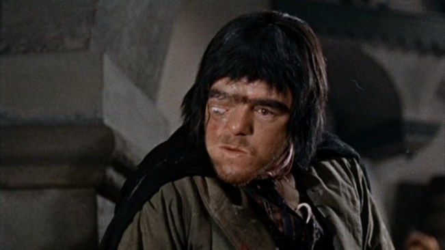 Miss Shelley succeeds in winning her betrothed’s freedom but Wolfit reports Ball’s unfortunate death in an escape attempt. He proves his sadism to Ball by allowing another inmate to suffer his fate at the gnarling teeth of the guard dogs. Ball has no idea he’s won his freedom until Shelley turns up at the prison assuming the role of a new housekeeper hoping to discover what really happened to her man. Maddern in true hunchback fashion will find his heart melting for the beauty and will soon become her protector. She’ll need it when Wolfit discovers the connection between the two young lovers who are about to find themselves suffering the fate of those who have come before them in Wolfit’s house of horrors beneath the prison walls.