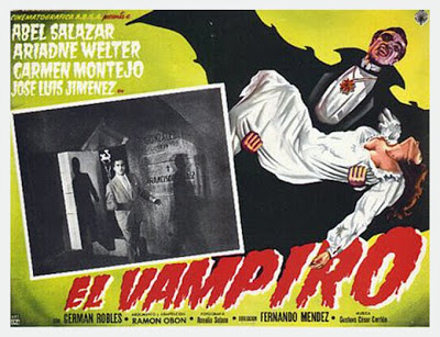 This effective chiller is the perfect example of what you would find under the foreign horrors chapter when reading up on vampire films in books like the appropriately titled, The Dracula Book or The Seal of Dracula. I repeatedly signed these volumes out at our local library as a kid till finally acquiring copies of each years later. Images of Dracula wanna be German Robles in his Bela Lugosi dinner suit populated magazines like Famous Monsters and Monsters of the Movies. It took me a number of years to finally see this south of the border vampire tale and it proved to be far better than I expected going in.