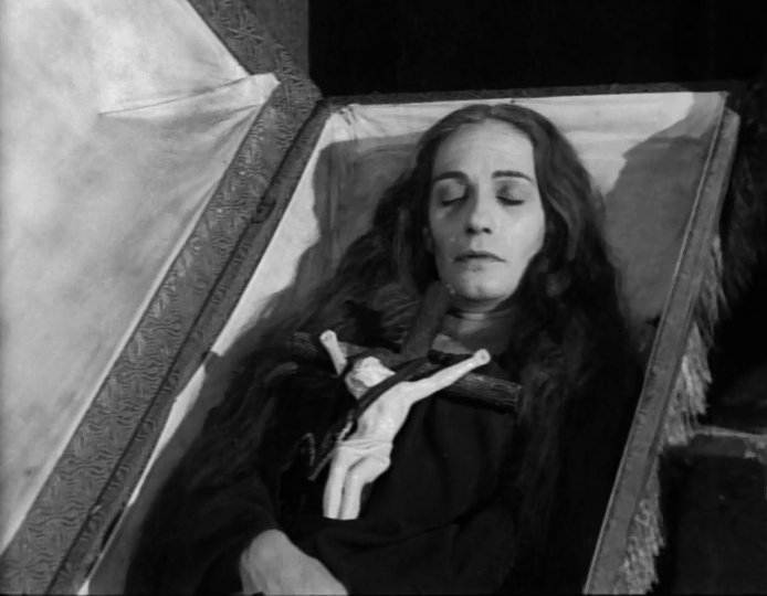 Abel Salazar not only produced this vampire thriller but takes up the role of the romantic hero when he encounters the attractive Ariadne Welter at a train depot. They’re both stranded. She is attempting to get back to her countryside estate and he may be heading towards the same destination with a purpose soon to be unveiled. Coming in on that same train is a mysterious large box. Apparently carrying dirt from an overseas country.