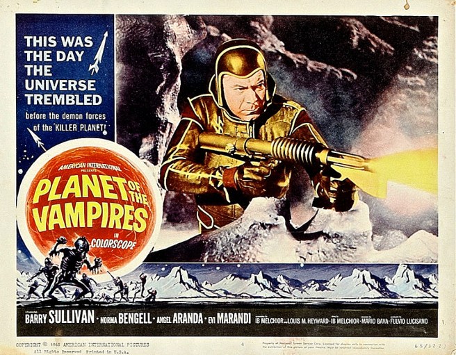 To a horror film fan, there is absolutely no mistaking a film directed by Mario Bava in color. Especially during his run of 1960 terrors that included Black Sabbath, Kill Baby Kill and this sci-fi thriller that once you’ve seen it, you’ll always retain the look and feel to the film. That’s thanks to it’s foggy lit colors and the black leather outfits worn by the space travelers headed by a graduate of the western and noir genre, American, Barry Sullivan. He’s taken up the Captain’s duties on a vessel bound for a world of blood curdling aliens.