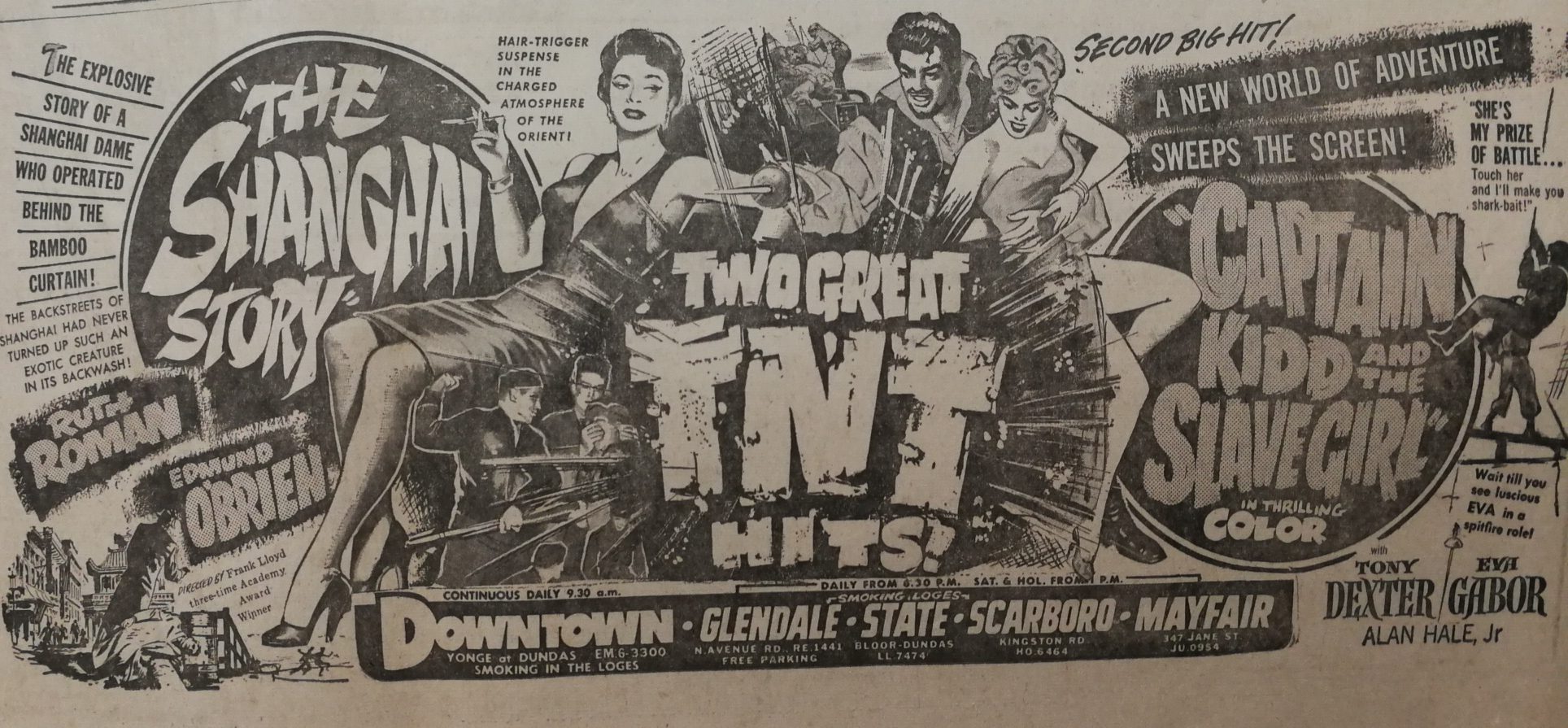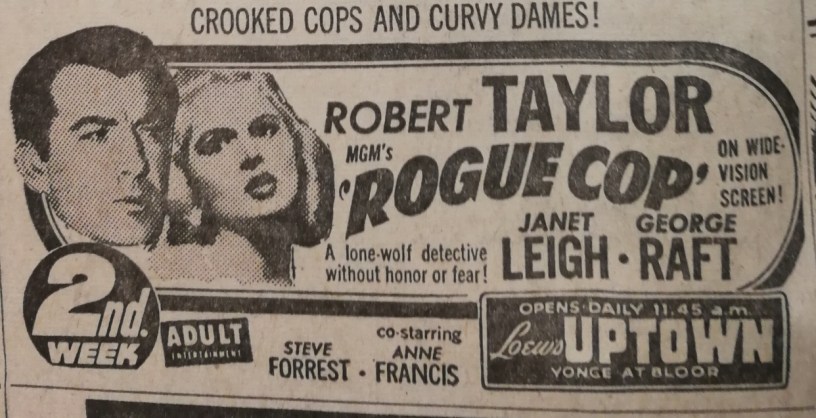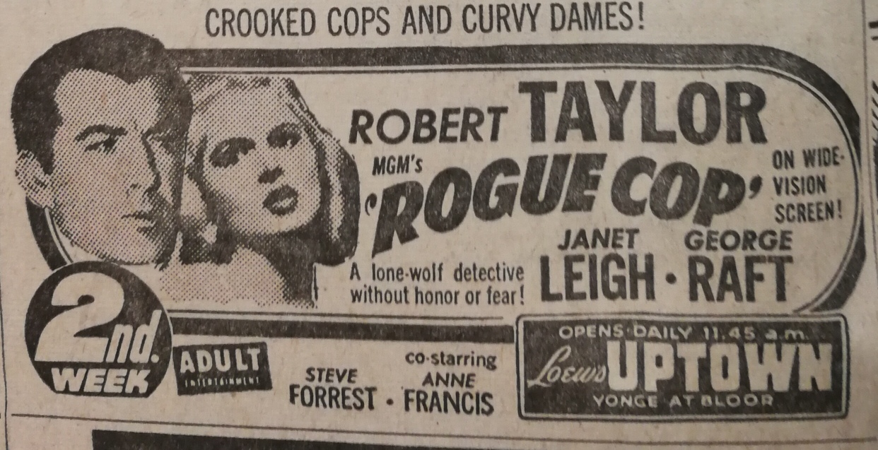 I’d definitely be at the Downtown to see ‘The Shanghai Story’ and ‘Captain Kidd and the Slavegirl’…but I’d also make a side trip to the Uptown to see the noir ‘Rogue Cop’. Now, if only there was a theater called the Midtown…