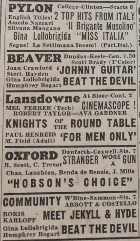 The Toronto Daily Star has plenty to offer us classic film fans who plan to spend a night on the town in search of a good movie that’s hopefully part of a double bill. Pick your favorite movie star and you’re bound to find something playing locally at one of the movie houses or drive ins.