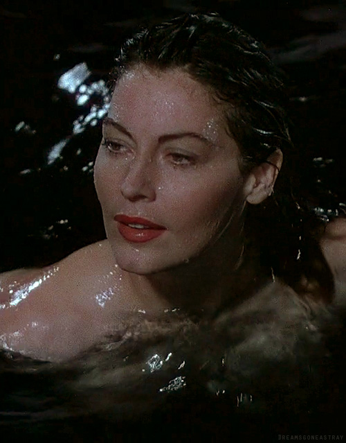 Just as Ava surrenders her future to Patrick, a schooner pulls into the bay that beguiles her. Impulsively she swims out to it in the night and boards her to find it abandoned except for a low key James Mason in the captain’s quarters below. She enters like a Goddess has risen from the sea. He seems to have expected her and she’s astonished to see that he’s painting a portrait of a woman that could easily be mistaken for her in ancient Greece.