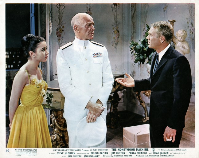 First up is when McQueen meets Brigid Bazlen, A bold beauty who just happens to be the Admiral’s daughter and she’s caught McQueen’s eye. Hutton himself runs into ex-flame Paula Prentiss who is a delight here as a near sighted beauty caught up in one comical screen gag after another due to her short sightedness. Using coded signals from ship to shore and back again, the boys begin to cash in at the table but when Dean Jagger’s Admiral sees the ship sending signals to the shoreline, the roulette wheel is going to experience some major setbacks.