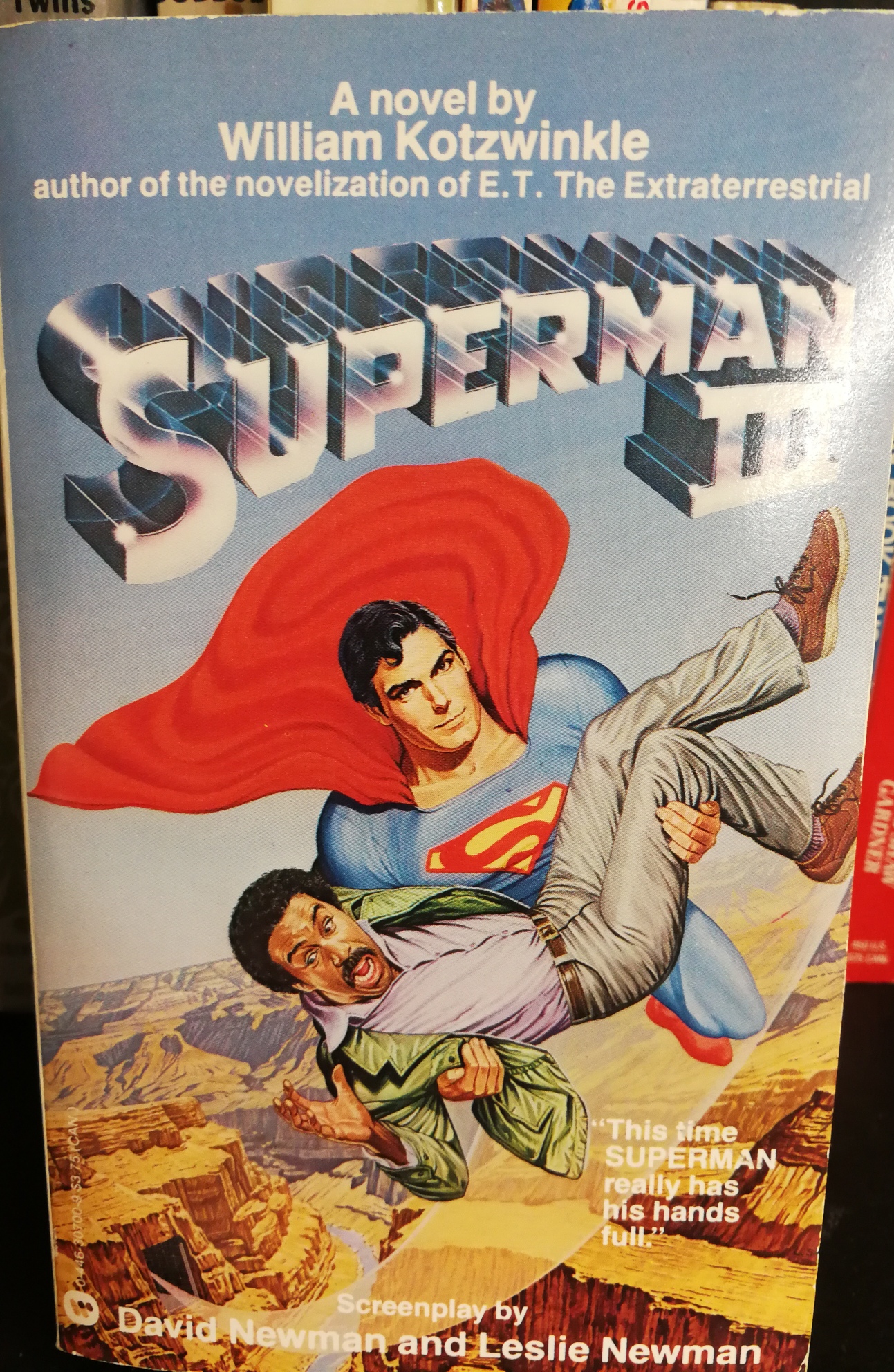 A sure fire way to market this one? Point out that the author also wrote the smash hit novelization for E.T. This poster/book cover was a blast but I don’t recall the movie measuring up to the idea of Richard Pryor joining the fun.