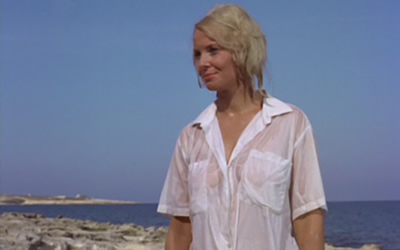 Horror film fans will likely best remember Miss Shepherd for her appearance opposite Vincent Price as Lady Ligeia in the 1964 Poe thriller The Tomb of Ligeia. I was surprised to see brief snippets if nudity here that had me thinking it might have even been “almost accidental” along a beach where she first meets Franciscus. It’s amazing what the slow motion button on a DVD remote can confirm that the naked eye believes it may have just seen.