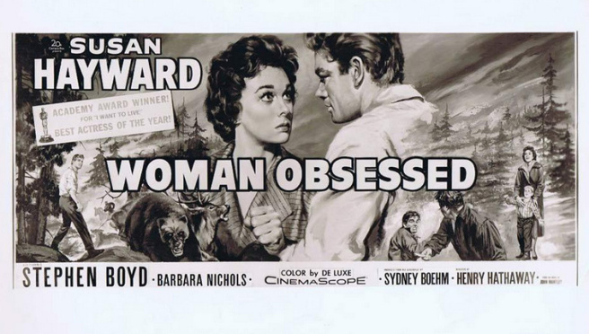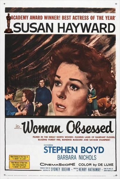 Capitalizing on the Oscars handed out for the 1958 season, the trailer for Woman Obsessed begins with the acceptance speech delivered by Susan Hayward for her award winning role in I Want To Live! before morphing into scenes of her latest big screen adventure opposite Stephen Boyd from 20th Century Fox and director Henry Hathaway.