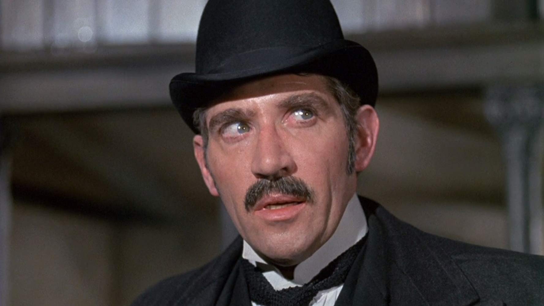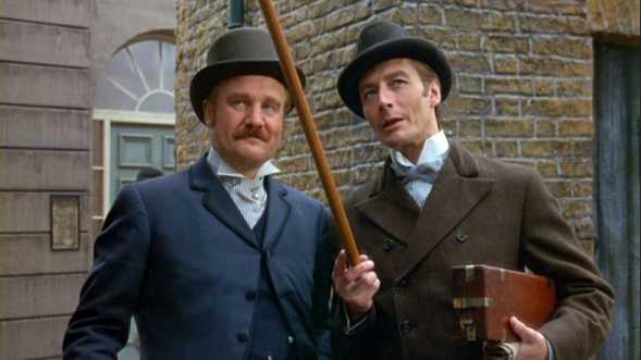 That won’t stop the killings from continuing and next up is the eventual Queen of Carry On titles, Miss Barbara Windsor as a young woman plying her trade on the streets late at night. With her death it’s Frank Finlay making his entrance as Inspector Lestrade who will of course turn to Neville’s Holmes for help in stopping the Ripper. Not before Robert Morley as Holmes’ brother Mycroft is sent by the Prime Minister to ask for Holmes assistance.