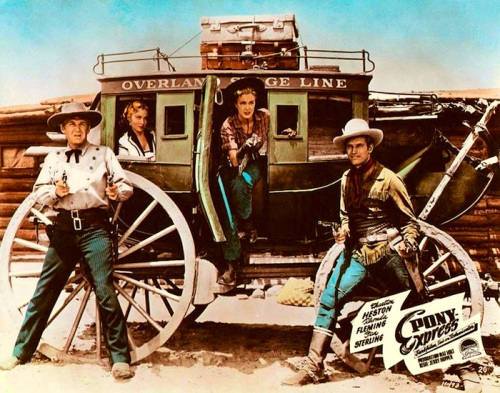 The pair are on a mission to get California to break from the Union. Heston himself will be enlisted to run the Pony Express along with pal Tucker which goes against the plans of Fleming’s brother and the men who back him including Henry Brandon whom Heston will eventually tangle with. Before the coach reaches it’s destination, Heston will seemingly save Fleming and her brother from harm and when he plants that powerful Heston kiss upon Miss Fleming, she’s undecided as to just where her loyalties are aimed.