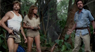 Not everyone is going to keep their head intact before the fade out and we’ll also be treated to deaths resulting from machine gun fire, crocodiles, hangings, man eating crabs and other assorted ideas brought forth by director Cardona Jr. Other movies that come to mind while watching this one might be intentional. They include The Treasure of Sierra Madre and The African Queen. From double crosses to leaches maybe our exploitation director was a big fan of Bogie and Huston.