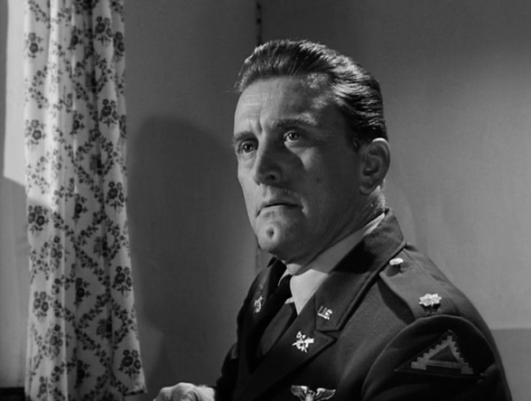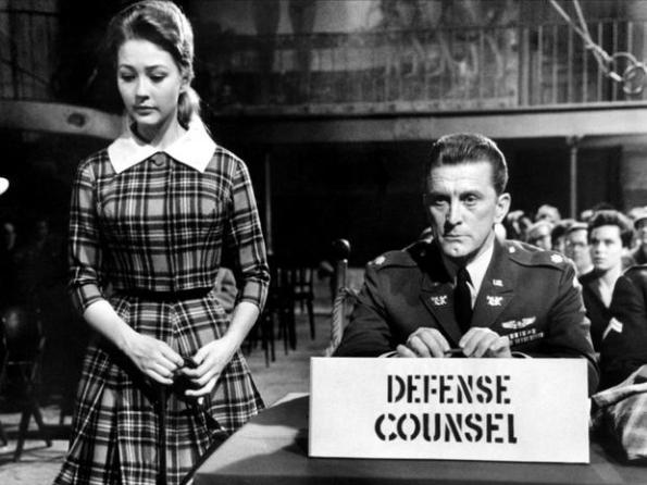 Douglas is called in as a military lawyer going head to head with the army’s prosecutor, E.G. Marshall. Kirk knows full well where this case is headed and the damage it’s going to do to the fragile Christine if the army pushes ahead with the death penalty for these men. It means a full scale public trial and Christine’s taking the stand to be cross examined. Kirk’s pushing to have the case settled out of court at 20 years for each man other than Blake who he isn’t entirely sure participated in the rape. It’s Blake who left the girl covered with his own shirt and attempts to plead guilty to the charges and commit suicide in his cell.