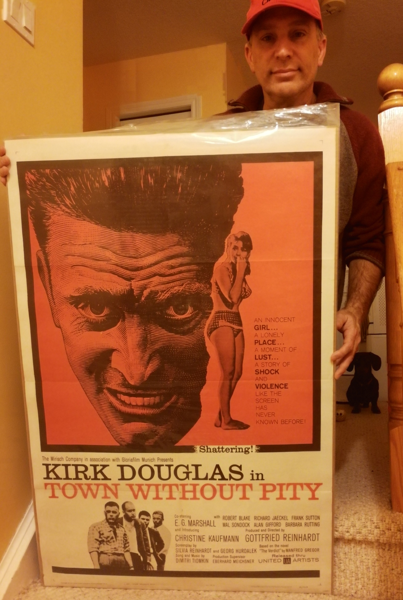 Enough with the negative, see this one for the subject material at a time when Hollywood was stretching it’s boundaries if you like or to notch up another performance from one of the screens all time great leading men. Though the film may not be in Kirk’s more memorable list of titles, this original one sheet is dynamite and is easily one of my favorites among the many Kirk originals I have here in the vault at Mike’s Take. A good eye should have spotted I’ve been photo bombed once again.