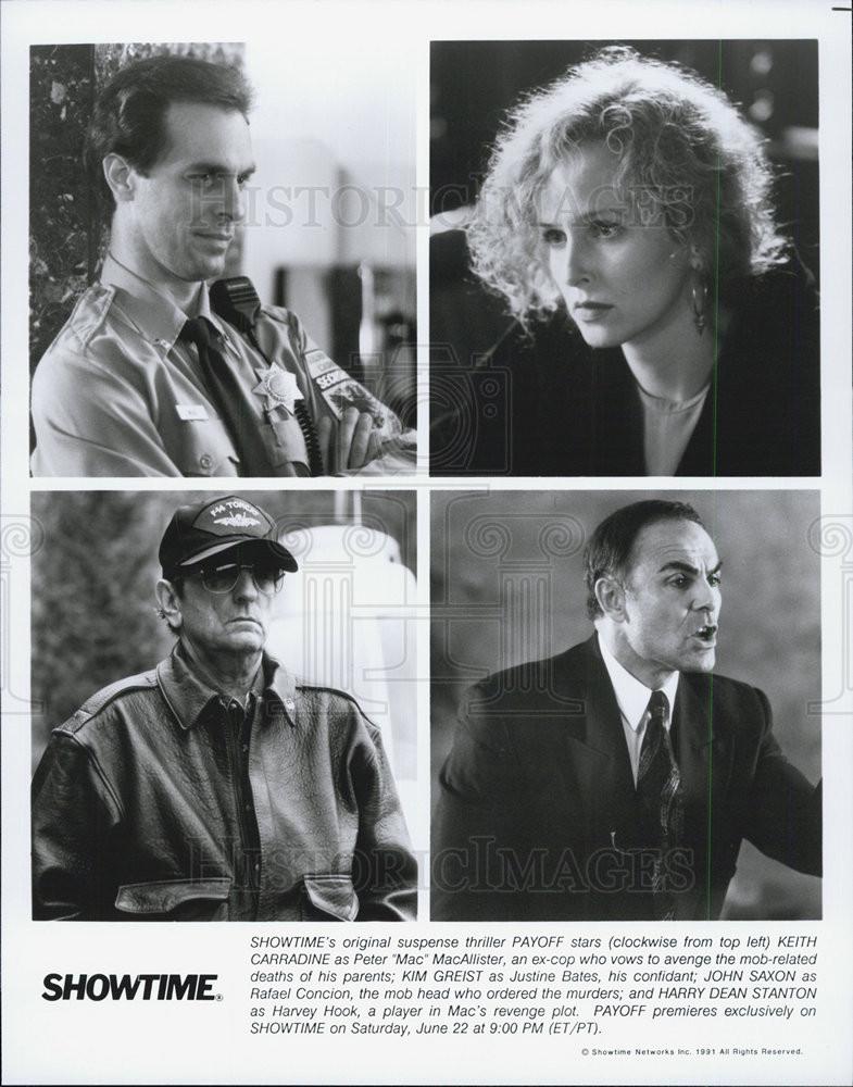 Payoff is a tale of revenge. One in which Carradine as a child is witness to his parents being killed in a mob retaliation. His father was a police officer making trouble for the mob which led to his assassination. Here we are years later with Keith living life as it comes. He resides on a boat and drives a limo to keep busy. It’s while driving a fare that he will see Saxon and memories come flooding back to him of his parents murder. Saxon was there and Keith is about to turn vigilante.
