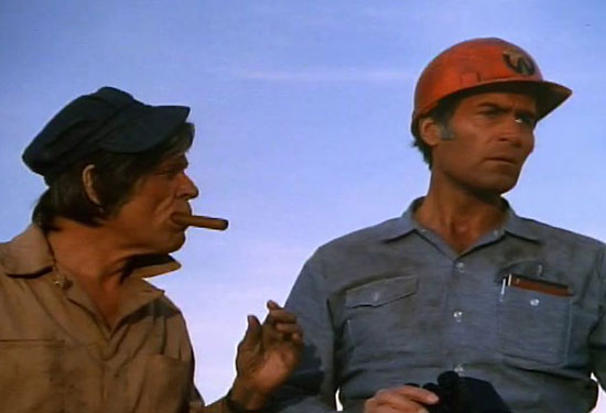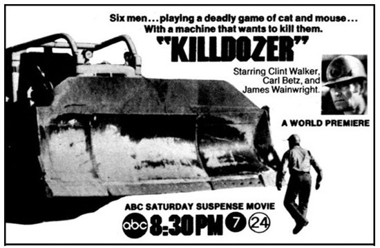 Here we are seventeen years later with a made for television thriller that features he-man Clint Walker as the head man of a construction crew on an isolated island battling a runaway bulldozer that has an evil energy controlling it bringing death and destruction to the crewmen after coming to rest against a giant meteorite from outer space.