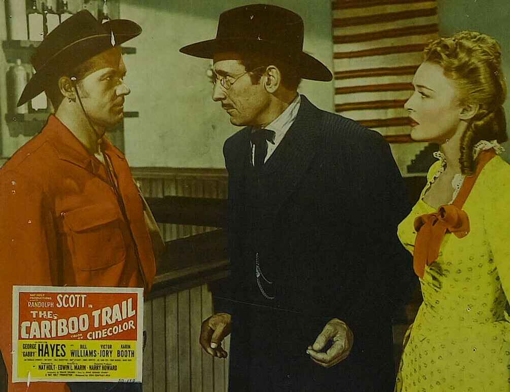 Of those seven Scott films, Victor Jory, would appear in three. This one as well as Fighting Man of the Plains and Canadian Pacific. No stranger to the western, Bill Williams, was also in Fighting Man of the Plains. George Hayes who most of us know as Gabby played his final western here retiring from the movie screens and aside the odd TV appearance as himself all but retired from appearing in front of the camera.