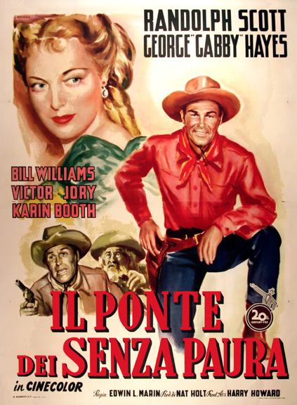 Western legend Scott is once again riding tall in the saddle when he and pals Bill Williams and Lee Tung Foo are moving a cattle herd into the mountains of British Columbia during the latter days of a gold rush. It’s while nearing a small frontier town that Scott will run afoul of familiar screen heavy Victor Jory while connecting with attractive Karin Booth who owns and operates the one saloon in town that Jory doesn’t have a stake in.