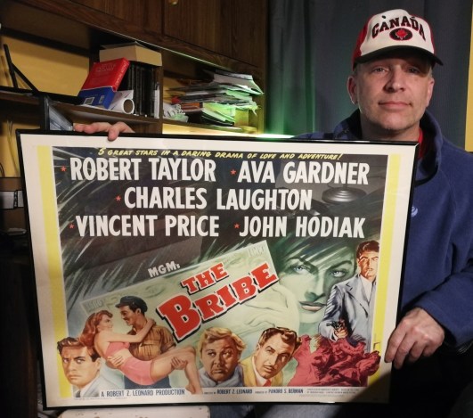 I did buy out a collector looking to sell off his extensive list of one sheets which netted me some firsts. My first original Gable title, a couple of Bogarts, numerous Glenn Ford titles, a Monty Clift one sheet. Yes plenty of awesome additions to the poster collection that continues to grow including a bunch of inserts and half sheets like this stunning 1965 re-release copy of The Bribe. A movie that many might remember due to the extensive footage used in the Carl Reiner/Steve Martin comedy, Dead Men Don’t Wear Plaid.