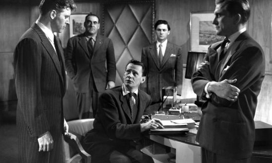 He will. That is when Kirk calls in his chief goon Mike Mazurki and a couple other hoods who lay a beating on Burt and dump him in the alley. This all but ends Kirk’s romance with Liz who rushes to Burt’s aide as does Corey who is disgusted with himself for signing on with Kirk years ago and all but squeezing Burt out of the picture with some fancy bookkeeping. Kirk’s world is going to come crashing down just as he feared but before we reach that point there’ll be murder and vengeance in the air.