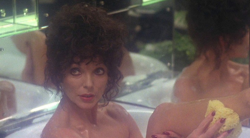 Yeah it’s all rather tame by today’s standards of sexual content and what one can easily find on the internet but placing this in the time of it’s release, I’m not so sure. Unless one put on the proverbial raincoat and headed to the local red light district or the famed theaters of 42nd Street, you weren’t likely to see as well known a star as Joan Collins parading about in her birthday suit. Even if she was on the downslope of a fading movie career at the time.