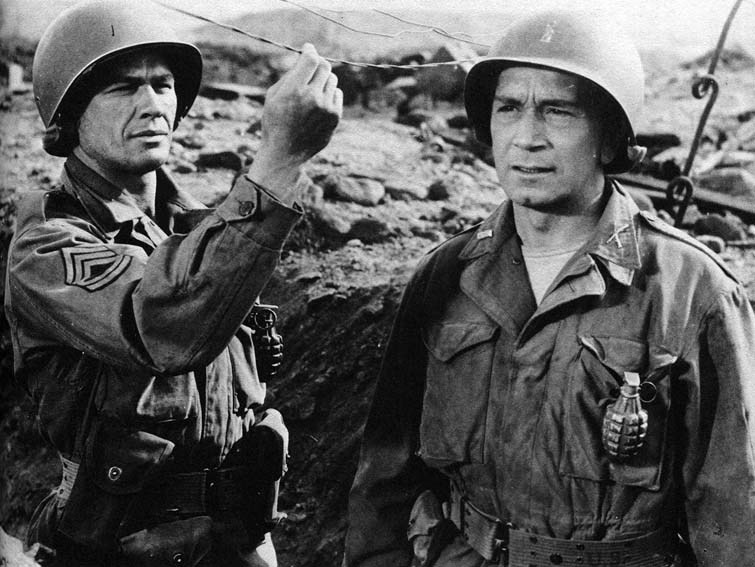 Almost played as a day in the life of a foot soldier, Conte and the gang will find themselves in more than one skirmish with the enemy making their way through the rocky terrain of Colorado as it subs in for North Korea. The best scene in the movie and one that proves very poignant is when Conte finds what’s left of his command overrun and lying dead in a series of trenches atop a small hill. It’s from this same hill that Connors who serves as the radio operator will reconnect with HQ that issues orders to Conte and his men to “hold that hill.” This will set the stage for the final battle of this 90 minute low budget effort that proves to be decent time filler and for those who like the actors involved, a window to both Conte’s leading man days and a look at the up and comers.