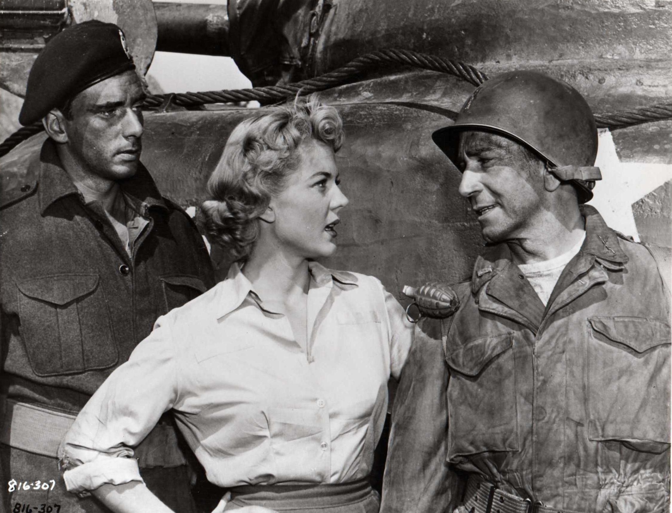 With Conte leading the way, the group are set to encounter a trio of Brits commanding a tank. Like Conte they to are trying to get back on the right side of the front line. Conte will be at odds with the Brit commander played by Richard Stapley but as he outranks him, he’ll be calling the shots. What Conte doesn’t see coming is that the Brits also have Peggie Castle along for the ride. She’s a U.N. representative who has lost her co-worker after the car they were riding in is bombed from the roadway crashing down into a ravine. Thankfully she also has nursing qualifications because Strother has been shot up and in need of medical assistance.
