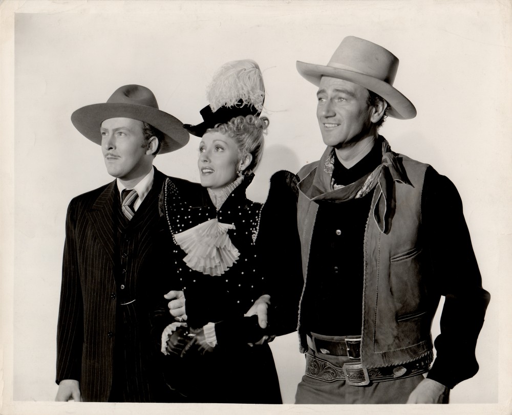 Not to be overlooked is Duke’s playing it light. Of course we think of him as that iconic cowboy but let’s not forget his penchant for comedy that would surface in various projects and roles over his long career. In the same year as this release he played leading man opposite the Queen of the screwball comedy herself, Miss Jean Arthur in A Lady Takes a Chance.