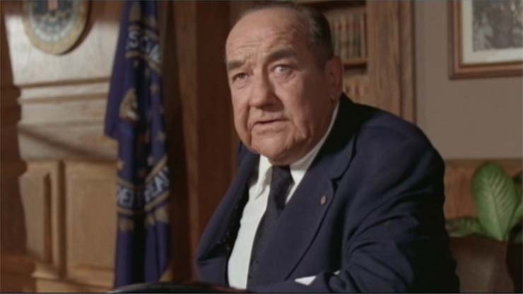 Keeping up with the facts of Hoover’s era we have clips of WW2 and plenty of gangster shootouts via stock footage that I’d wager were carried over from some of AIP’s earlier productions like Bloody Mama or Dillinger. It’s a nice touch on occasion when Cohen would film Crawford in black and white to make it appear as if he was in some of those old newsreels. As the years pass by in seconds on screen you’ll see Da Silva as FDR, Duggan as LBJ along with the assassinations of the Kennedy’s and King. And through it all stands Crawford pulling strings and essentially blackmailing his way through the politics of Washington.