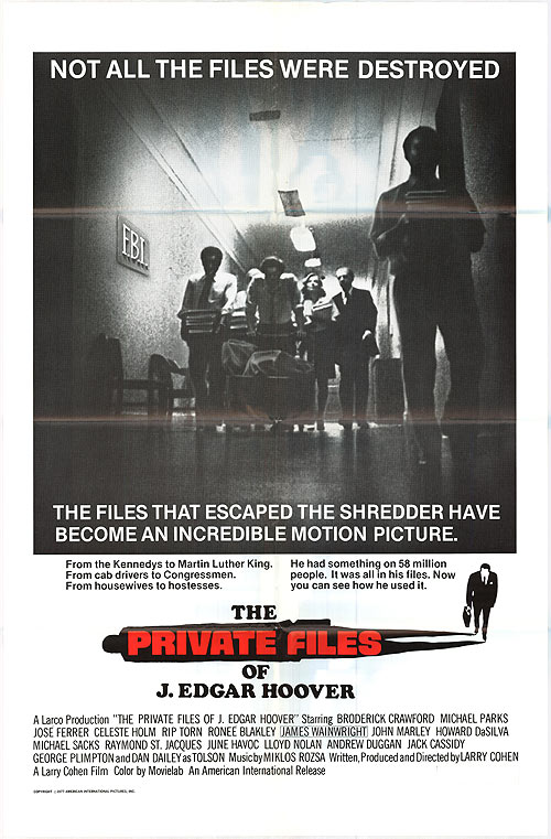 Considering this is an AIP production directed by cult fave Larry Cohen, I shudder to think just what we might find in these private files of the one time FBI director. Considering Cohen directed the It’s Alive trilogy, Q The Winged Serpent and The Stuff, whatever we think we’re going to find is sure to be a bloody, grotesque mess.