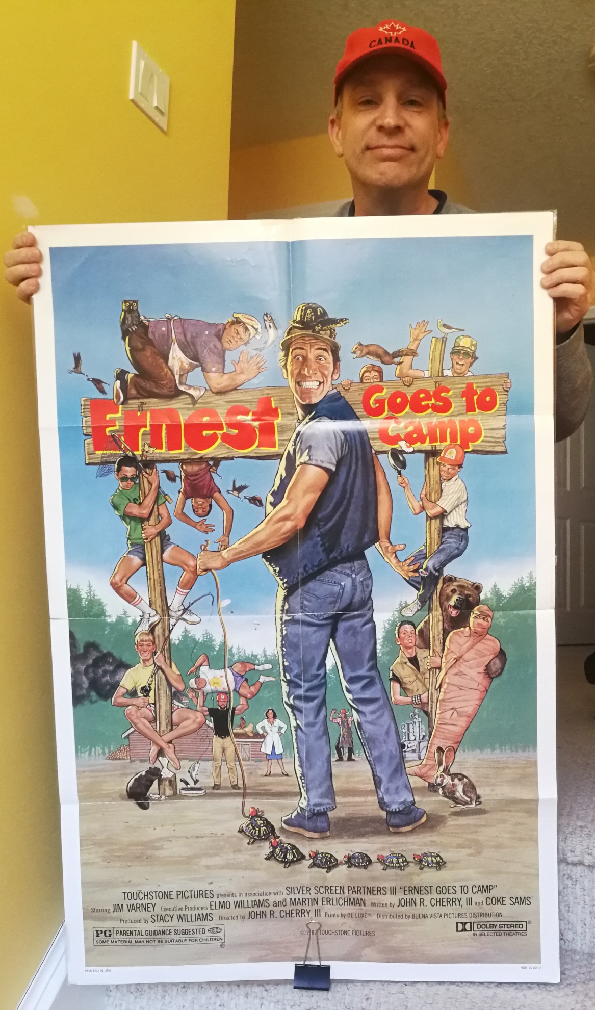 Three? Ok let’s make it four and have a little fun with this. Never thought I’d have an Ernest Goes to Camp poster with Jim Varney’s grinning mug here in the collection. I do now.