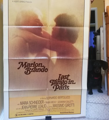 Lastly in that pile I pulled a 1982 rerelease of a film that had received the dreaded X rating. It’s Marlon Brando’s Last Tango In Paris that I really could care less about as a film but it’ll go nicely with the other Brando titles I have here tucked away alongside Brando the Wiener Dog who guards them with his short yet stalky frame who specifically had me edited from this photo.