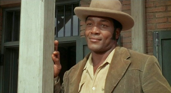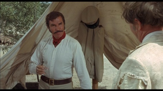 Burt’s got the mustache firmly in place for this outing and just as Lamas is about to have him put to death Jim Brown turns up claiming he’s a lawman from north of the border looking to take Burt back for a bank robbery that netted him $6000. The money’s missing and Lamas wants to know where it is. As for Big Jim? Lamas isn’t too sure of him either and has the pair of them placed under guard.