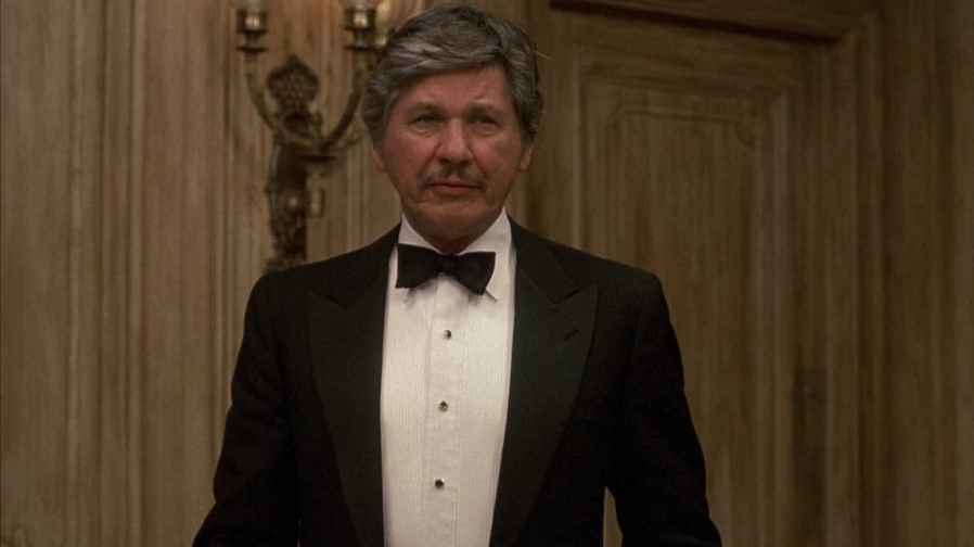 That quote credited to legendary tough guy Charles Bronson has always been in the back of my mind when I think of or revisit the eighth of nine films that he collaborated on with director J. Lee Thompson. The reason is of course that the plot includes a cocktail party for Bronson to attend looking very dapper in a black suit and matching bowtie. All that’s missing is his wife and frequent co-star, Jill Ireland, on his arm.
